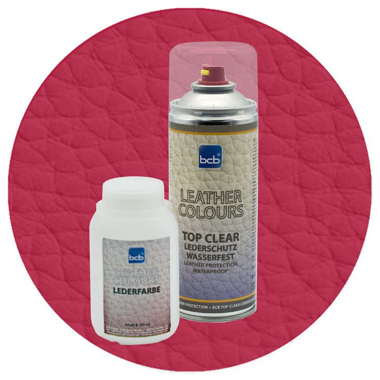1. Lieferumfang: 250 ml BCB Lederfarbe (RAL) + 400 ml BCB Top Clear Versiegelung.