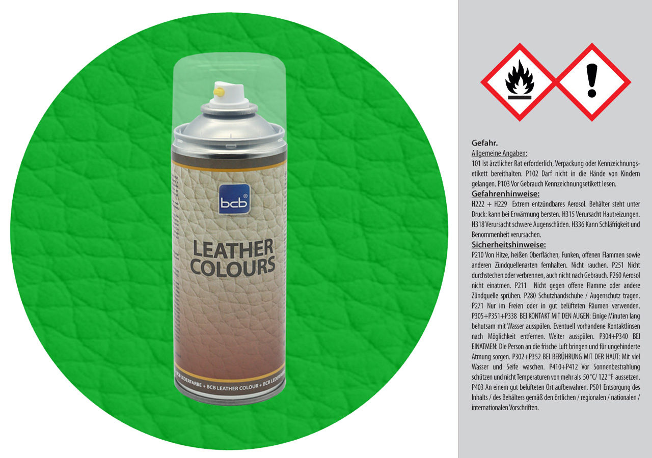Beachten Sie beim Kauf: die Lederfarbe besteht aus Pigmenten und Gerbstoffen, die schnell mit Zusatzmittel in der Spraydose reagieren. Die Lederfarben sind auf Wasserbasis, deswegen sind sie sehr empfindlich auf Temperaturschwankungen. Daher sollte man die Spraydose möglichst schnell (innerhalb von 1 Monat vom Befülldatum) verbrauchen und in Zimmertemperatur aufbewahren.